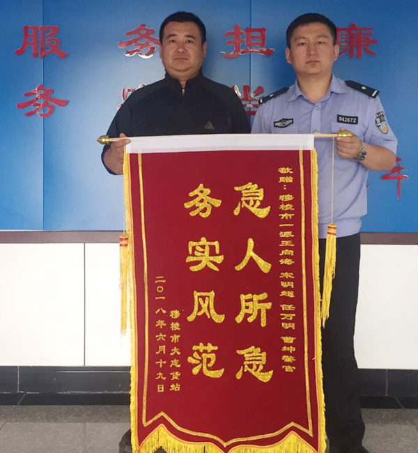 近日,货站孟老板将一面“急人所急,务实风范”的锦旗送到八面通第一派出所表达自己的谢意。